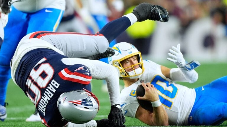 The Patriots sacked Herbert six times, the most an team had during the wild-card round. New England’s pass-rush didn’t look as formidable during the regular-season: Their 35 sacks were 26th in the NFL.