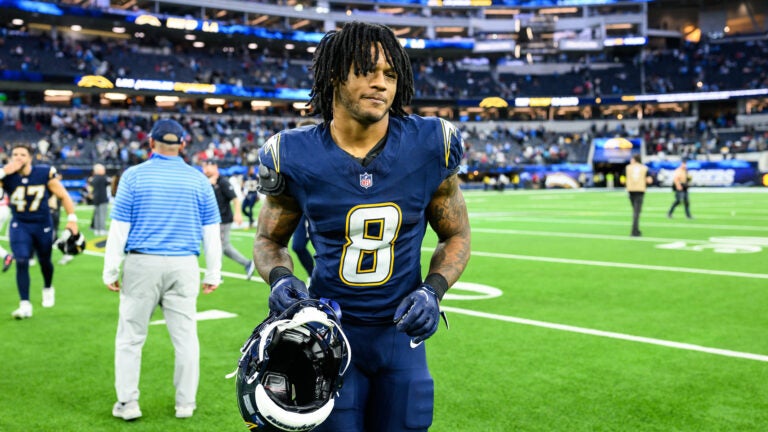 Chargers running back Omarion Hampton is one of six players the team ruled as questionable for Sunday’s game against the Patriots.