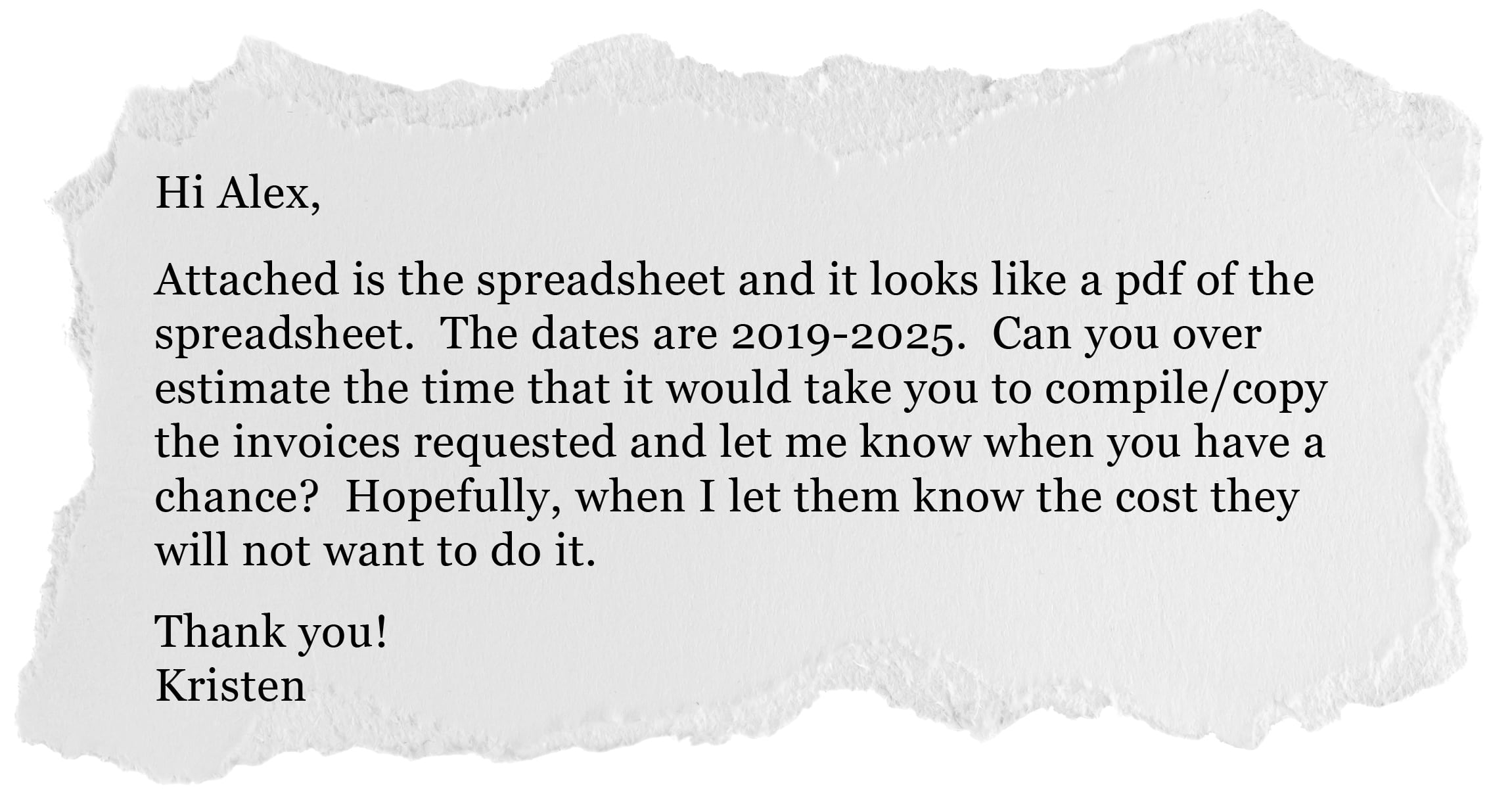 “Can you over estimate the time that it would take you to compile/copy the invoices requested and let me know when you have a chance?” one district employee wrote in a May 12, 2025, email, which York obtained in a broader record release. “Hopefully, when I let [York] know the cost they will not want to do it.”