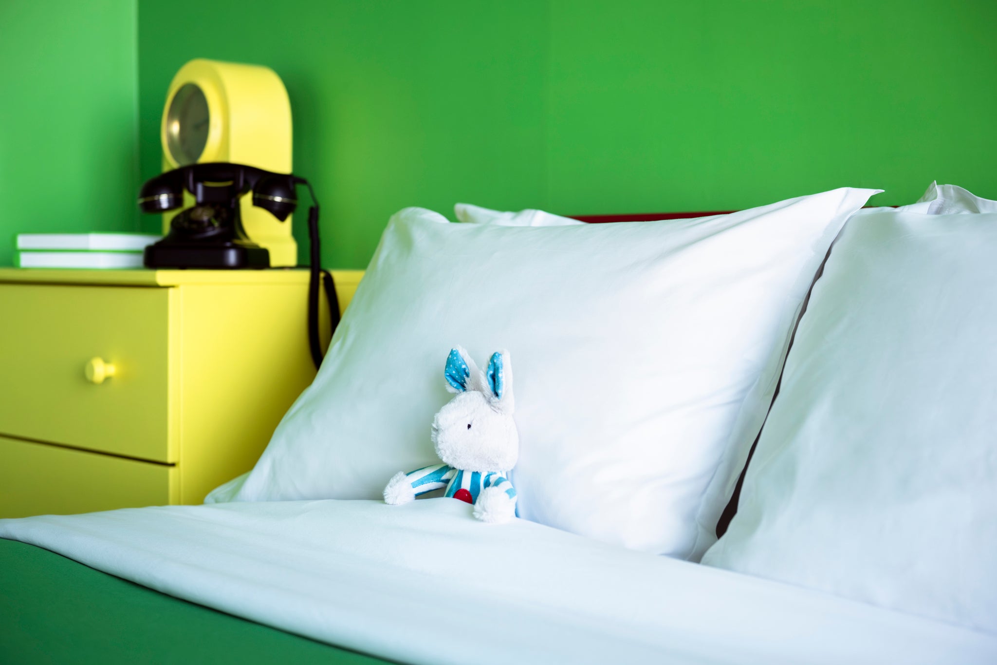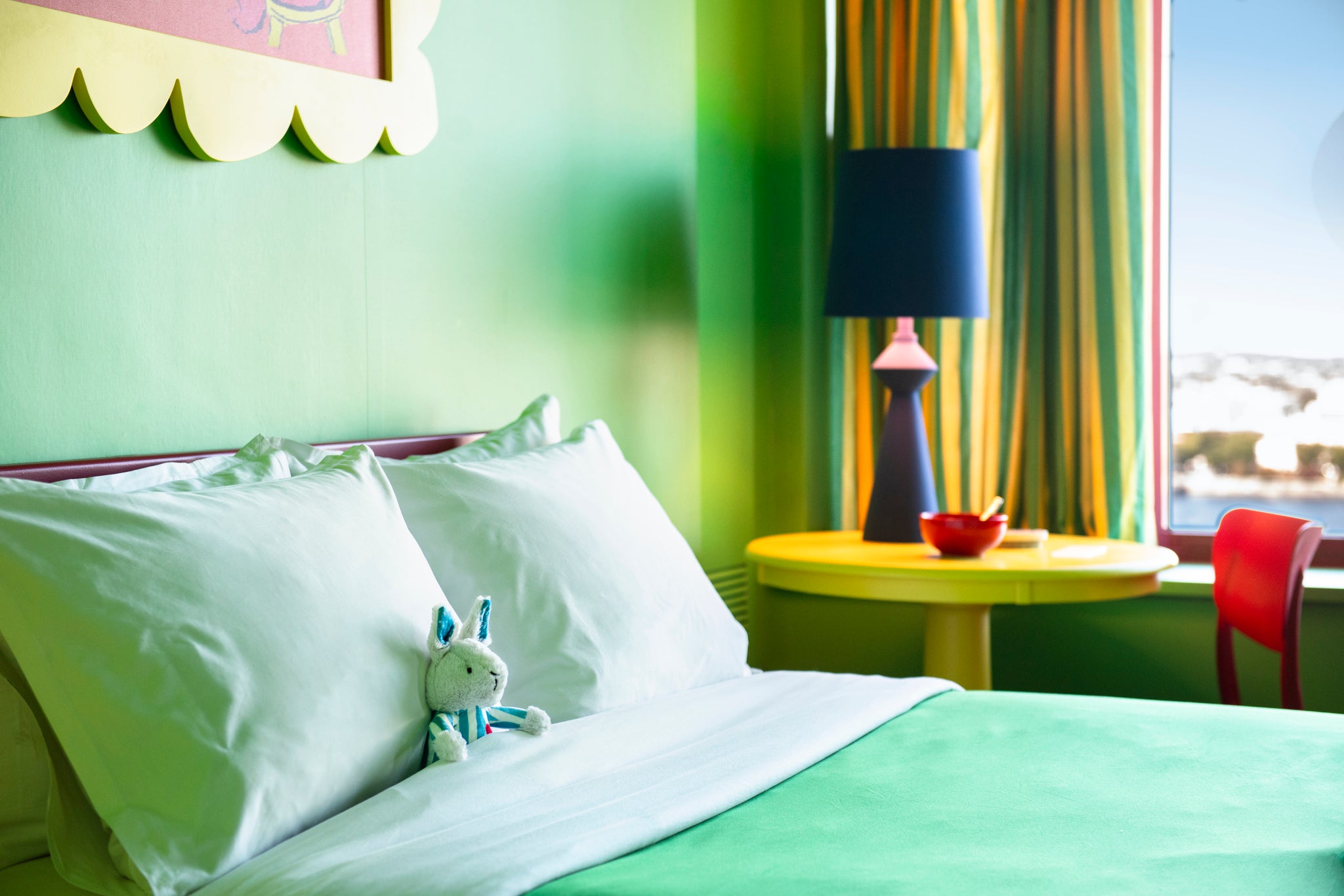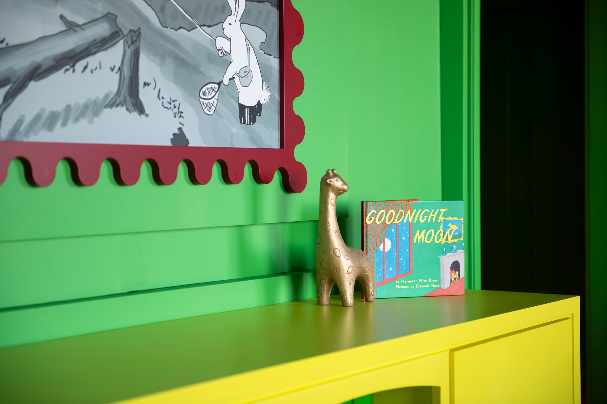 The suite sleeps up to two adults and two children, with a queen bed in the Great Green Room and a king bed in suite’s main bedroom. Guests are greeted with milk and cookies, a “Goodnight Moon” book, and a plush bunny upon arrival.