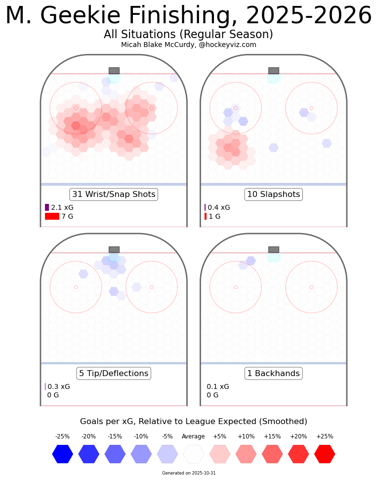Of course, Geekie also generated what was presumed to be an unsustainable 22.0 shooting percentage last season — a year where his 31 goals over the final 55 games of the 2024-25 campaign were tied for the third-most in the league behind only Leon Draisaitl and Pastrnak.