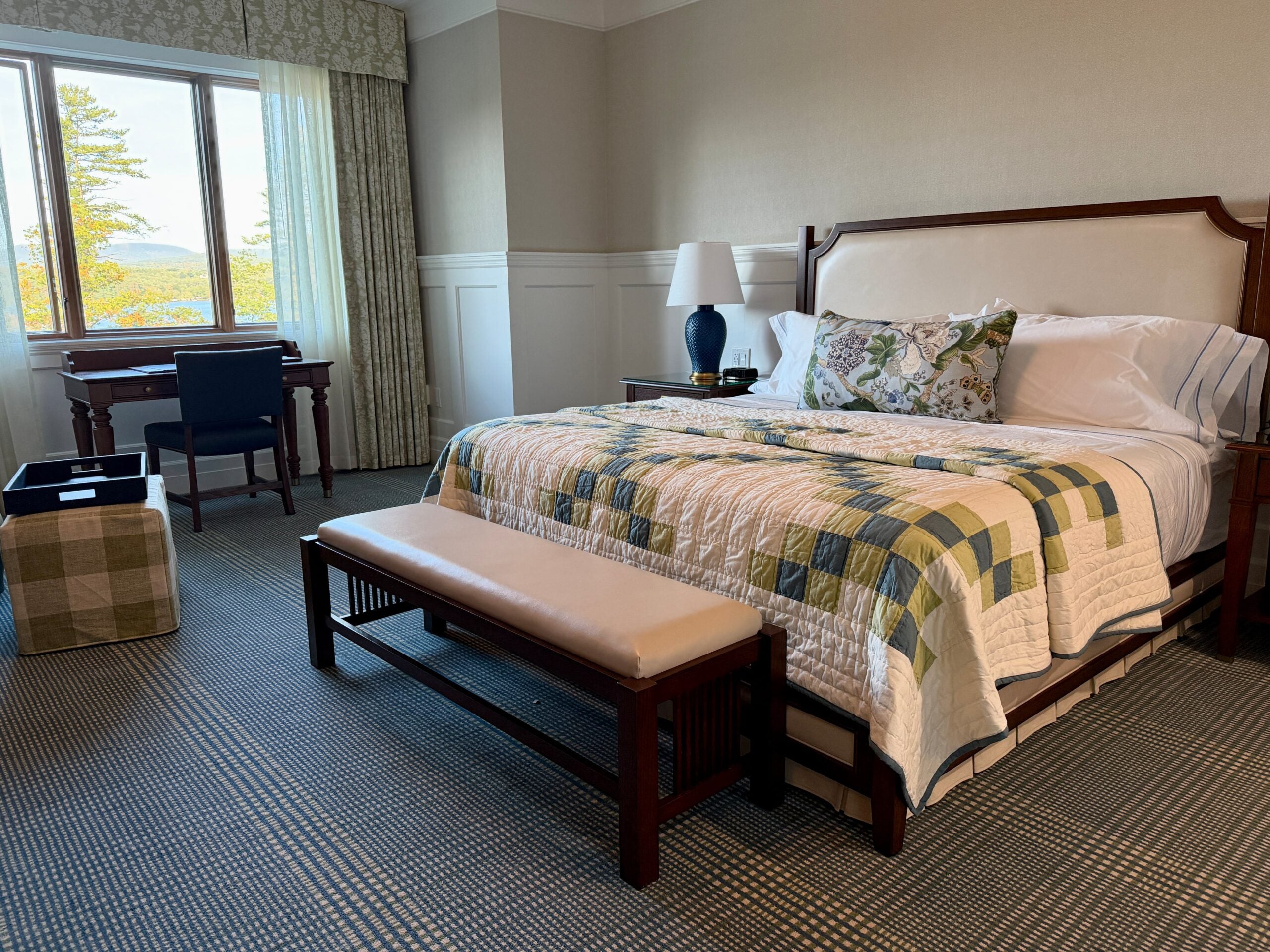 There are many grand features at the Lake Estate on Winnisquam to be impressed with, but what struck me the most were the blink-and-you-miss-them details. Look carefully at the carpet in the corridor; the pattern looks like leaves that have fallen on the forest floor. The art around the hotel echoes the natural surroundings, and the sconces in the hallways mirror the branches outside. The blotter on the desk in my room was actual leather, as were the tray and trash cans.