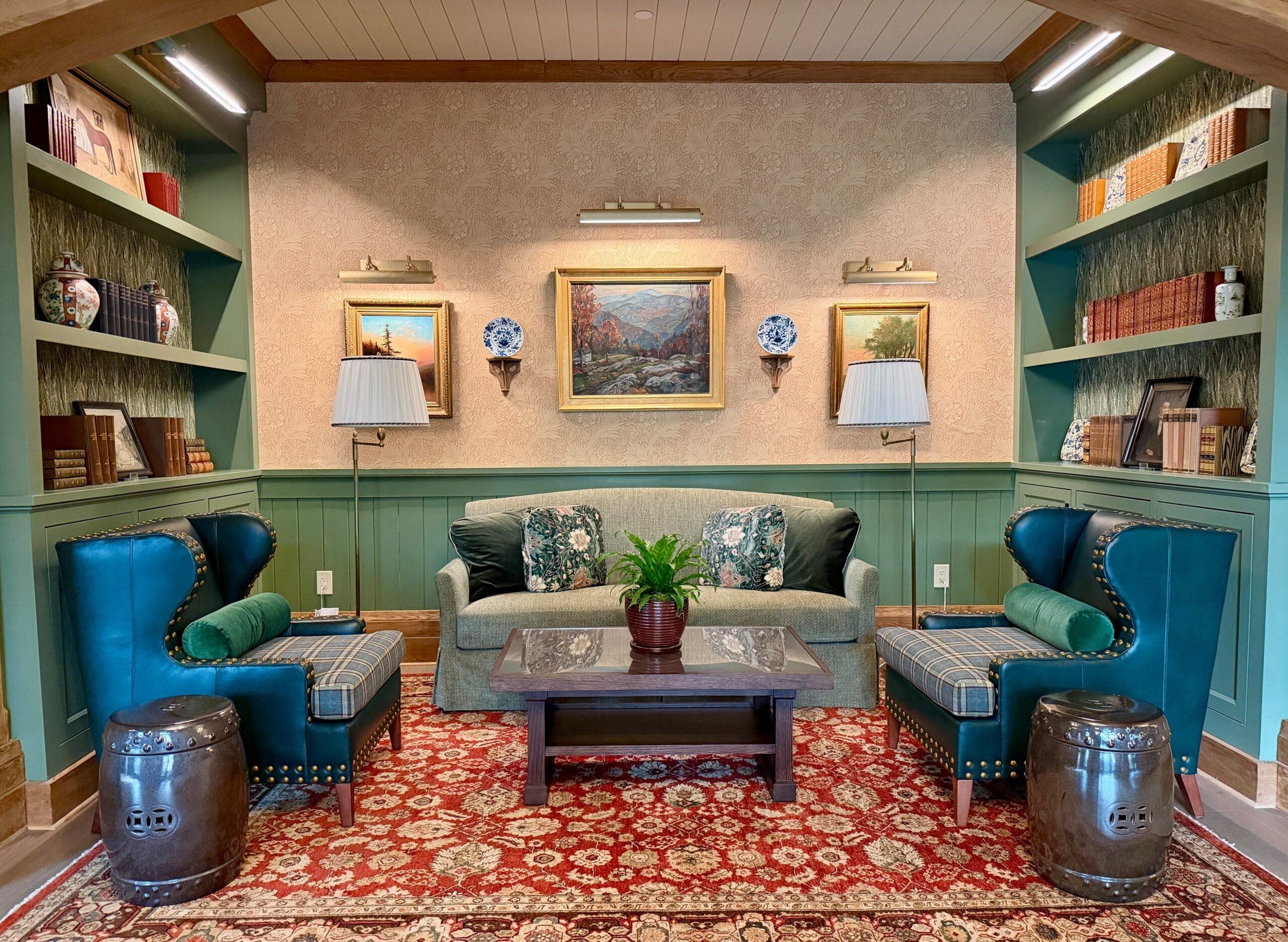 The exterior view is the first indication that the Lake Estate was created with its surroundings top of mind. It’s modeled after the grand lake cottages of yore, albeit on steroids. Stone and cedar shingles are the primary exterior materials, and the earth tones help the resort blend into the landscape. The description I kept coming back to in my mind is that it feels as if you’re staying at a wealthy uncle’s sprawling lakefront cabin or you’re visiting a monied friend’s guest house, particularly with building accents painted hunter green. The lack of pretense fits the New England model of invisible wealth.