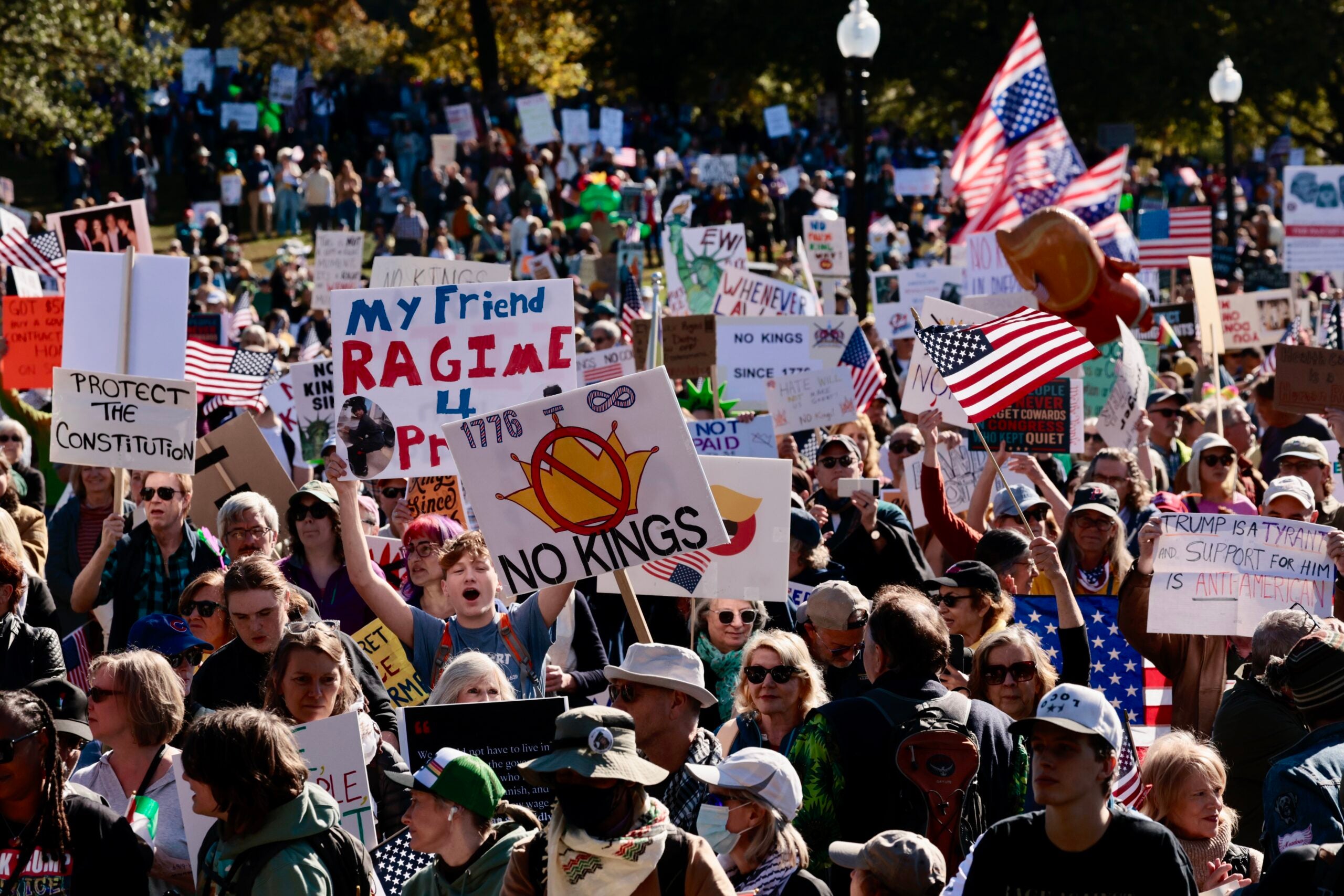 The “No Kings” protests held in Boston and across Massachusetts are a part of the thousands of “No Kings” demonstrations being held across the United States on Saturday. It’s also the second such protest against the Trump administration this year, with “No Kings” protests being held in June.