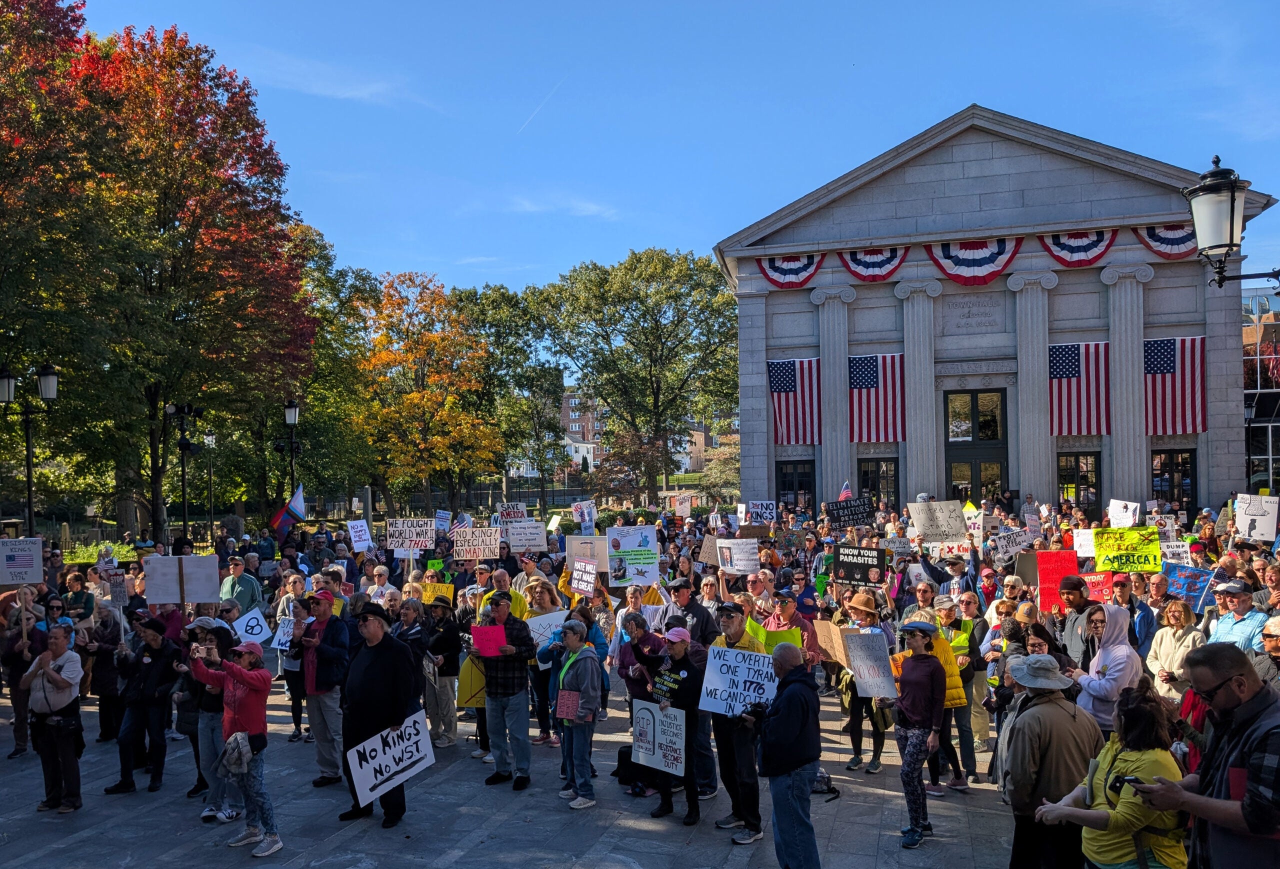 Tens of thousands of protesters are expected to attend the “No Kings” protest at Boston Common, which began around noon. The protest featured speeches from Boston Mayor Michelle Wu and others.