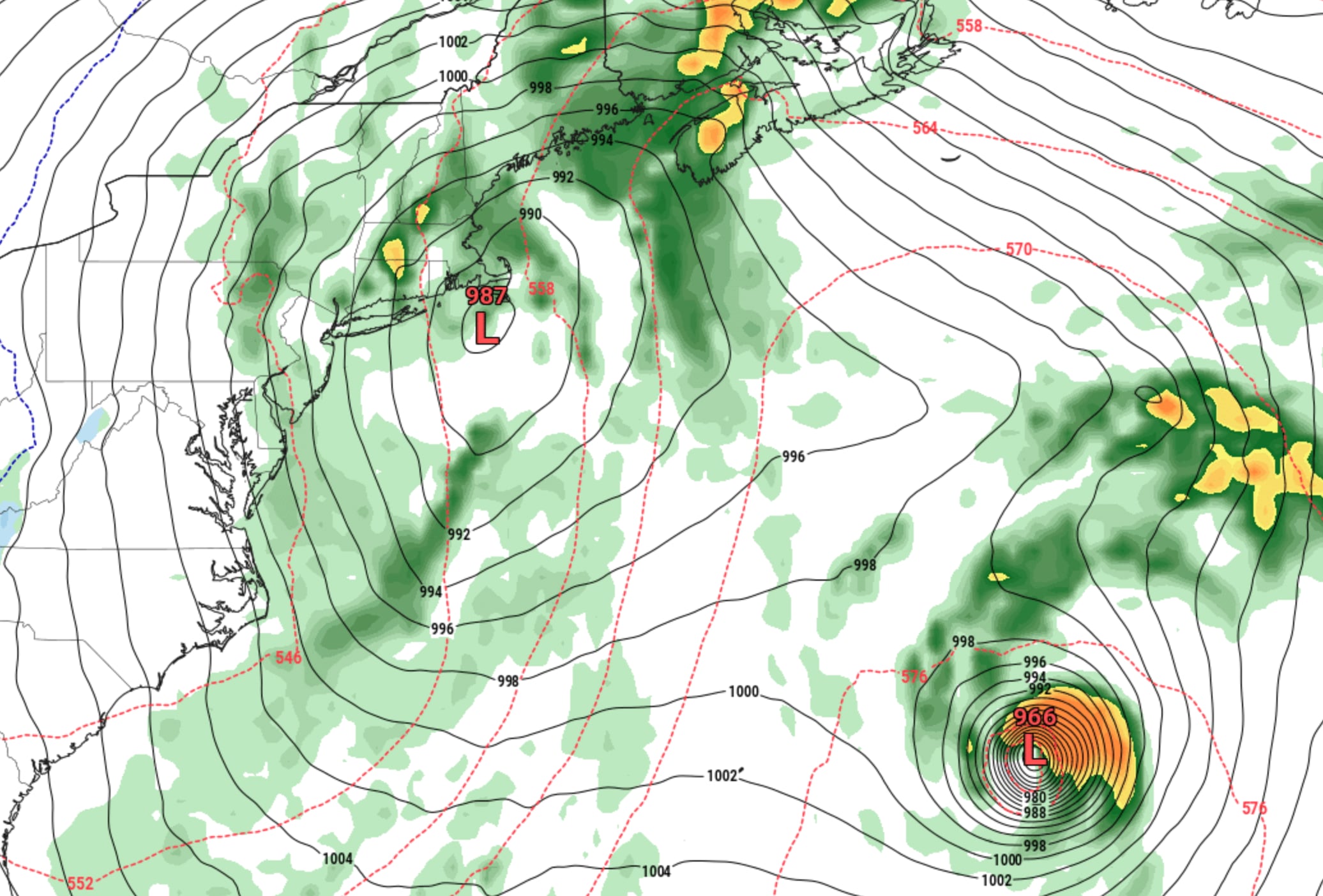 The Euro shows Melissa lurking offshore as a nor’easter impacts New England Thursday morning. – Pivotal Weather