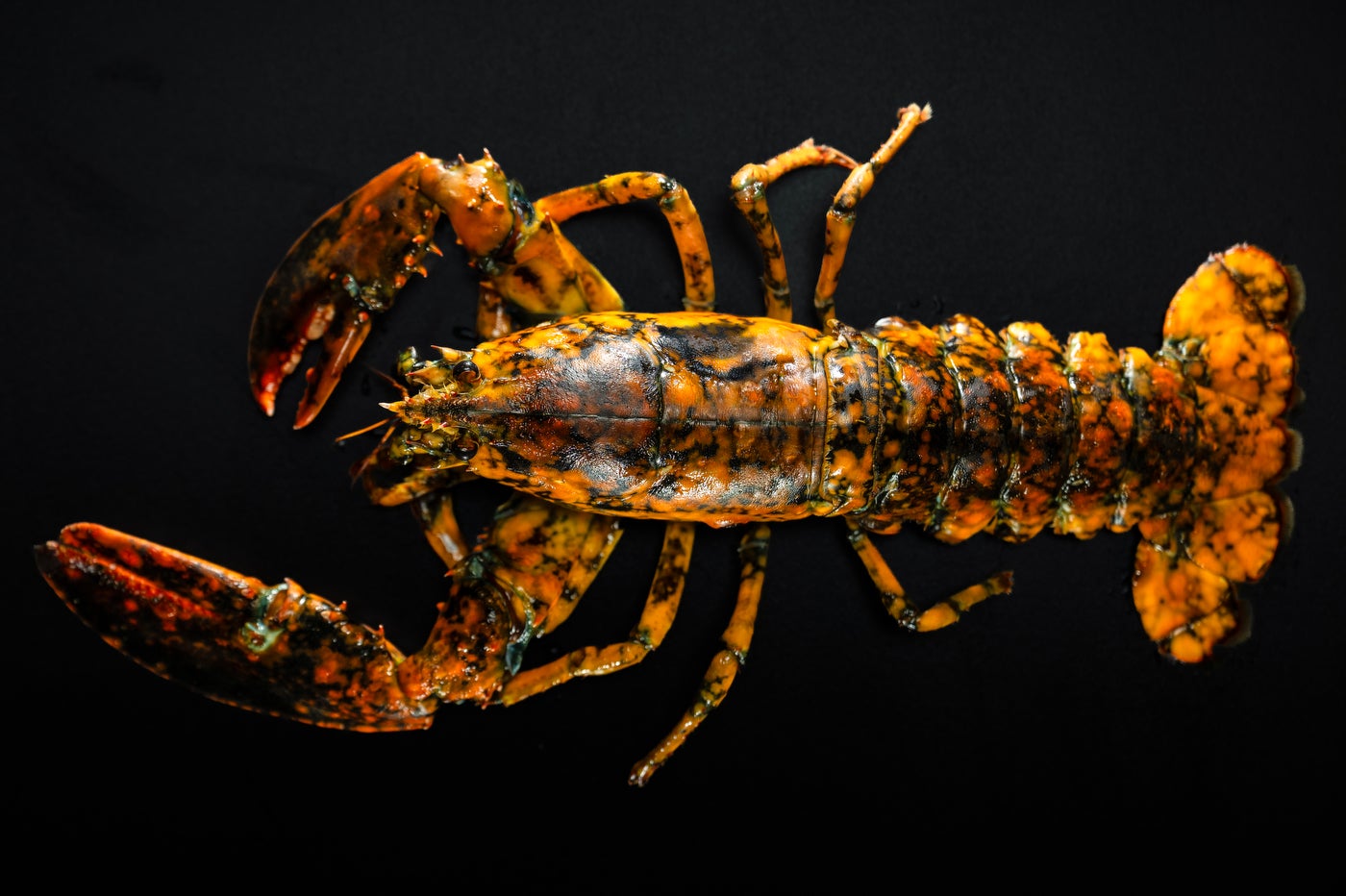 A Gloucester fisherman caught 1-in-30-million orange-and-black lobster.