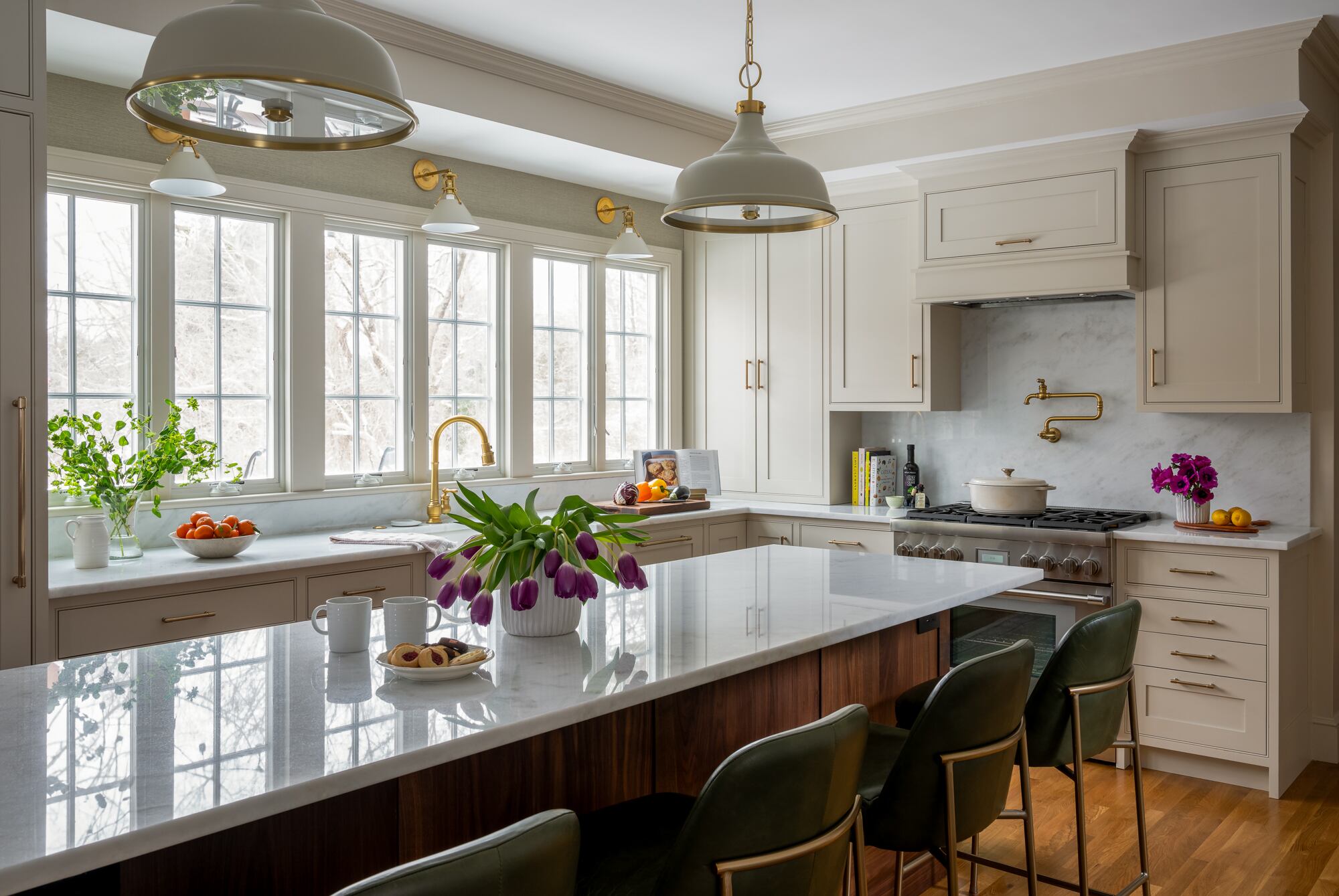 Entertaining can be a source of joy during the holidays, but hosting in a cramped or unoptimized space has the power to dull its shine. This was the case for Samantha Baj, a homeowner in Bedford. Her house was built in 2007, but the kitchen lacked a modern flow. The refrigerator was stranded on the other side of the room, opposite the cooking space. And instead of an island, there was what Baj calls a “peninsula” with three stools, which jutted right in front of a sliding door that led to the outdoor deck.